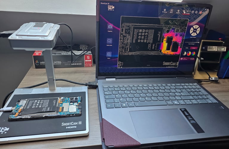 Grâce à cet équipement, je peux détecter des surchauffes anormales sur les composants, ce qui permet de localiser certains courts-circuits directement sur la carte électronique.