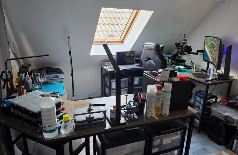 Cet atelier me permet de réaliser des réparations électroniques dans de bonnes conditions, avec une organisation adaptée à chaque intervention.